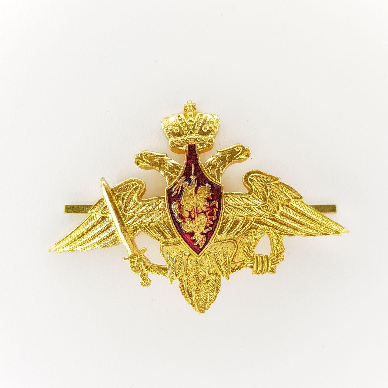Эмблема на тулью большая нового образца ТУ 2015 г ВС РФ, золотой высота 4,6 см металл - интернет магазин Полигон