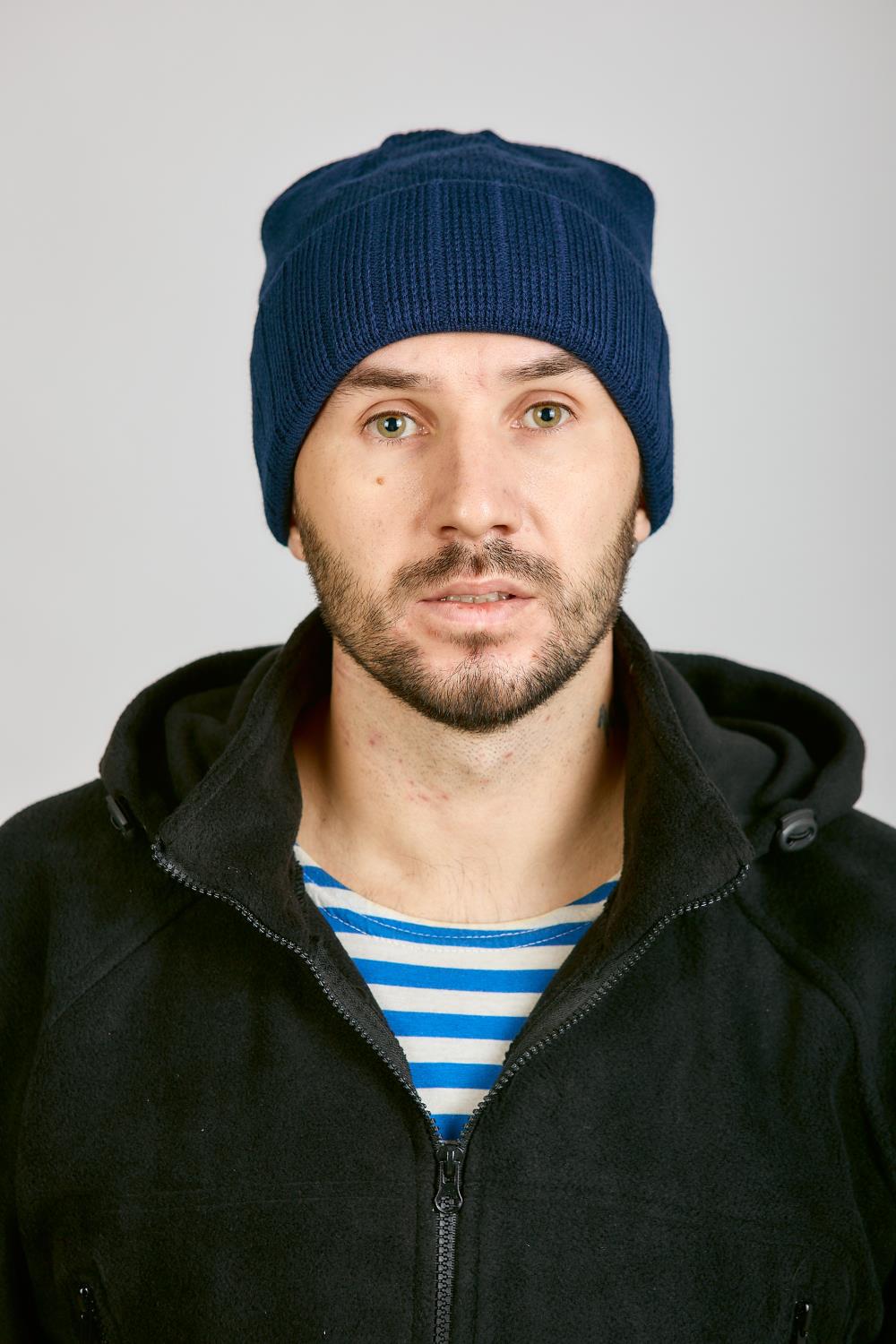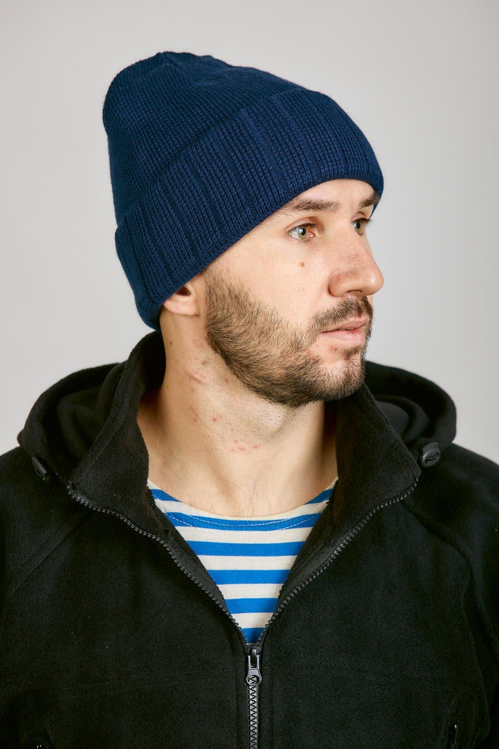 Шапка с отворотом 3-х нитка, синий - интернет магазин Полигон