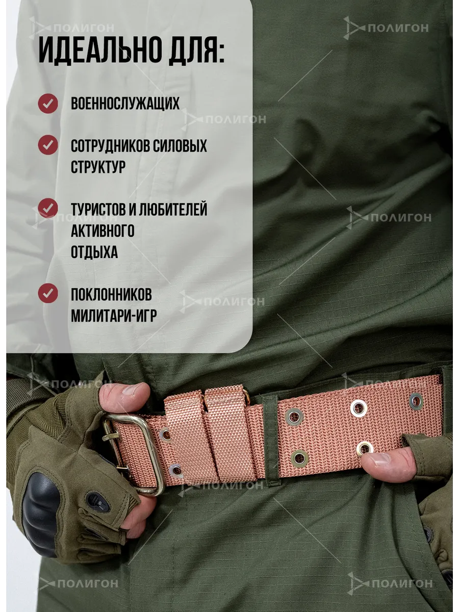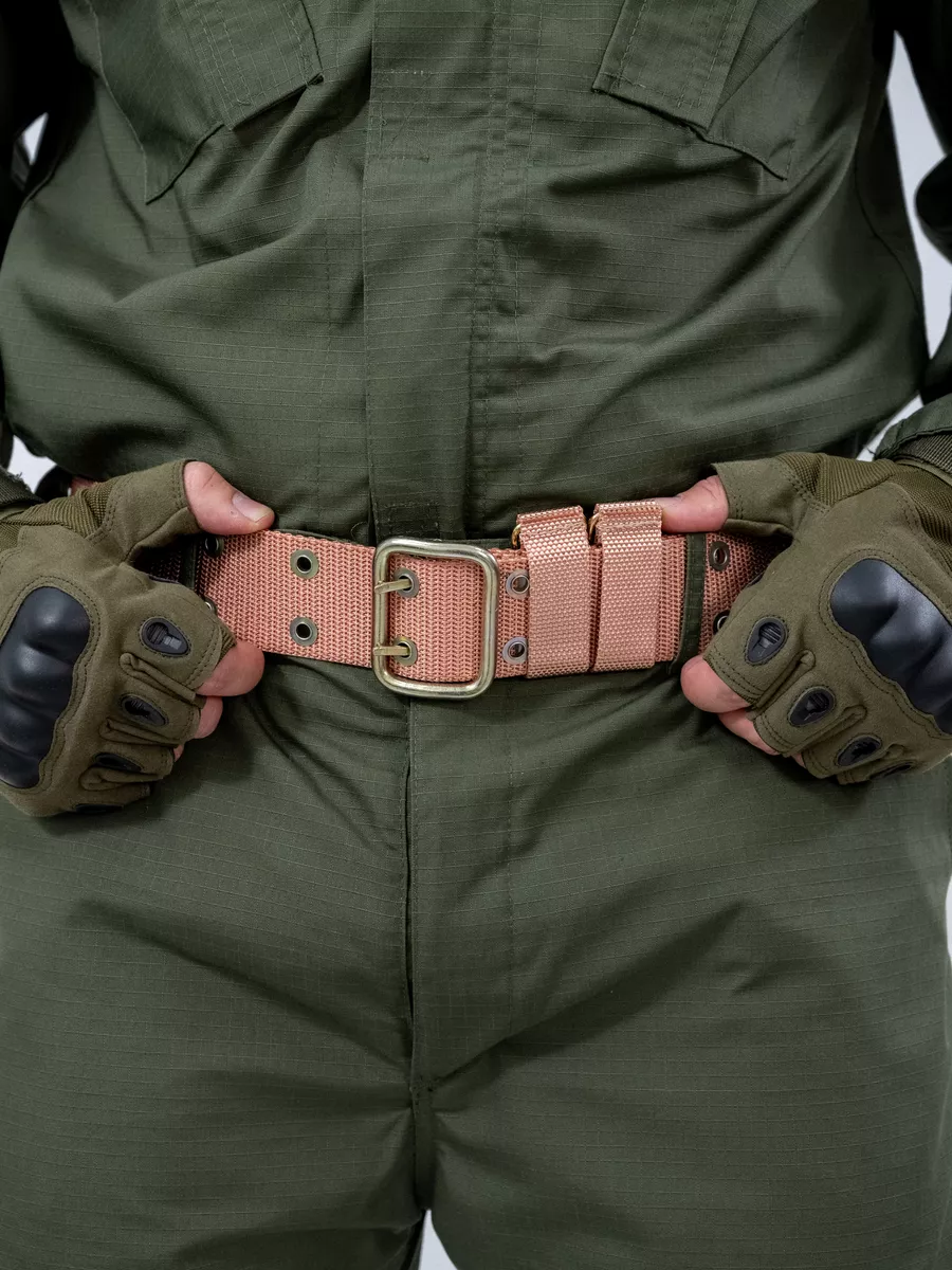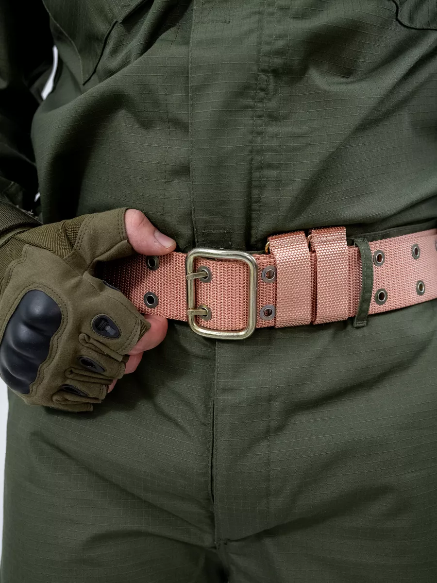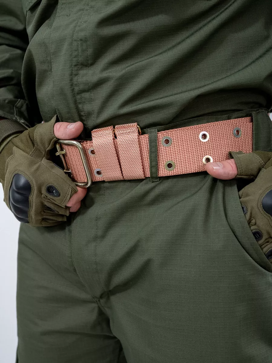 Ремень поясной армейский вкбо нового образца. Материал стропы капрон в расцветке песочный. Пряжка, люверсы и D-кольца изготовлены из стали. По всему текстильному ремню расположены люверсы в 2 ряда. Тактический ремень уставной подойдет для мужчин и для женщин. Люверсы металлические (металл), ширина ремня 5 см. Поясной ремень с классической пряжкой унисекс подойдет для джинсов и брюк, под стиль милитари и камуфляж. Прочный и надежный ремень для повседневной носки. Удобная пряжка. При намокании пояс мужской не вытягивается и держит форму. Широкий военный ремень пользуется спросом на охоте, рыбалке, у фотографа, на отдыхе. На военном ремне шлевка с металлическими полукольцами для размещения гражданского и военного снаряжения (фляга, кобура, нож, фонарь и другое).