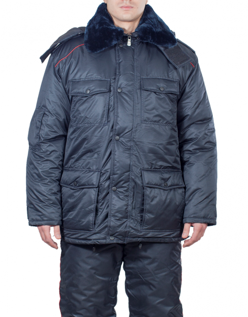 Съемная утепляющая подкладка с рукавами с трикотажными манжетами пристегивается на разъемную «молнию» петли и пуговицы.Два нагрудных накладных кармана с клапанами на кнопках и текстильных застежках. На правом рукаве – накладной карман с вертикальным входом на «молнии».