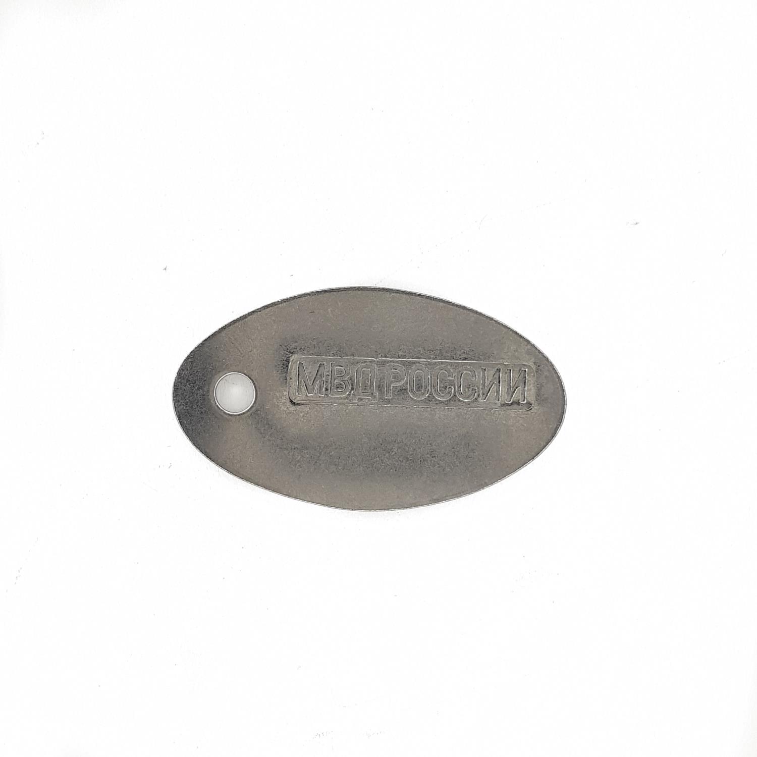 Жетон овальный МВД России. Медальон серебристого цвета, размер 45х25 мм, форма овальная, материал нержавеющая сталь. Имеется отверстие 3мм для шариковой цепочки (цепи), толщина стандартного жетона 1мм. Заготовка предназначена для повседневной носки, всесезонный. Надпись нанесена методом штамповки. Возможна двухсторонняя гравировка. Данная металлическая заготовка подходит для фрезеровки, штамповки или лазерной гравировки. Это отличный подарок близким и друзьям с бесконечным сроком службы. Военный жетон порадует вашего мужчину, мужа, любимого, брата и даже коллегу. Сделайте любую гравировку с заботой, например: с одной стороны выбить личный номер военнослужащего, с другой стороны Фамилию и инициалы, группу крови, дату рождения, номер телефона и многое другое, что считаете необходимым. Так же жетоны используют как брелок для ключей или адресник для животных.
