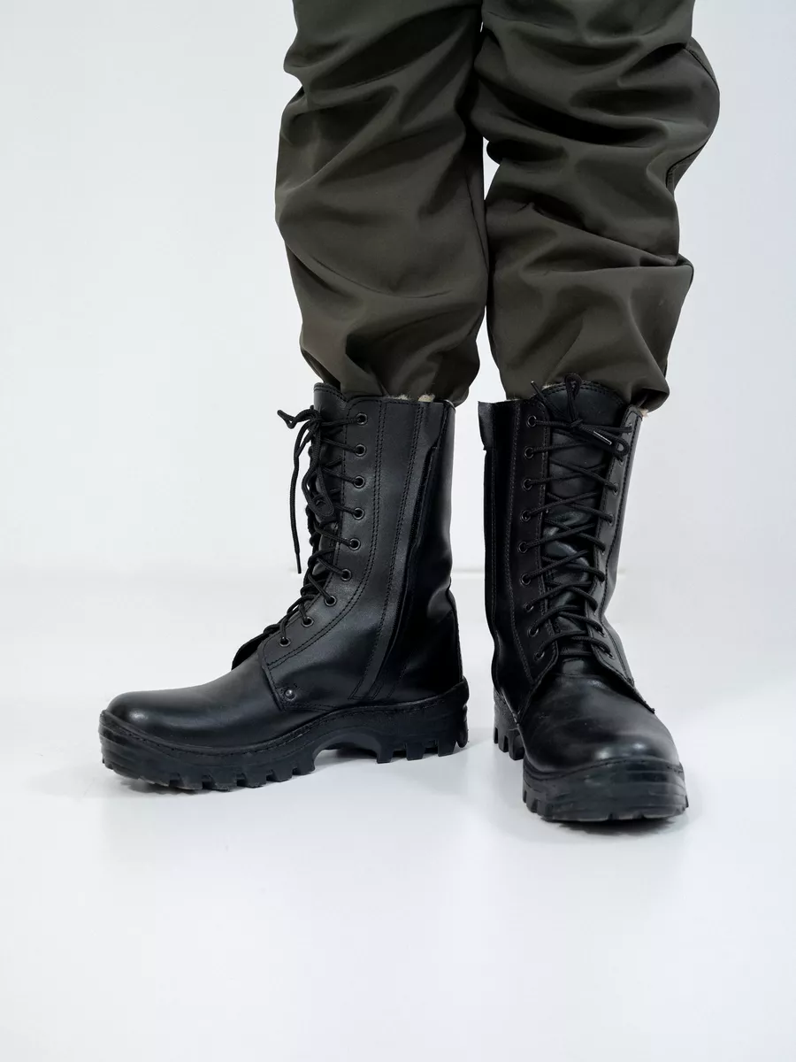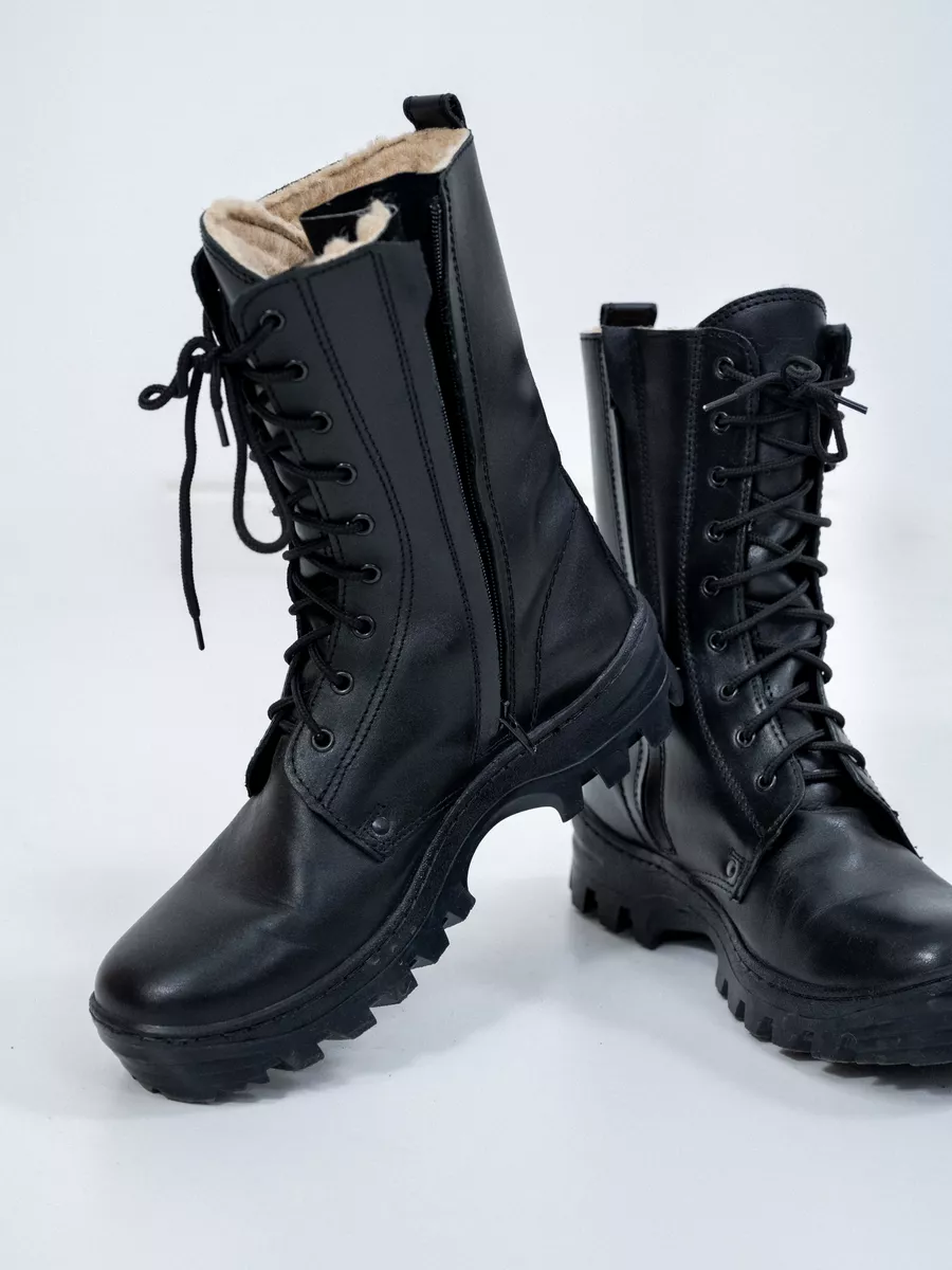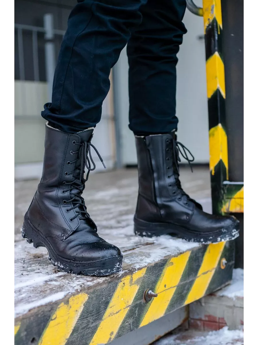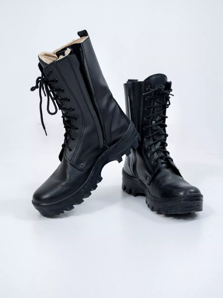Берцы НАВИГАТОР, Бутекс черный, натуральный мех зима - интернет магазин Полигон