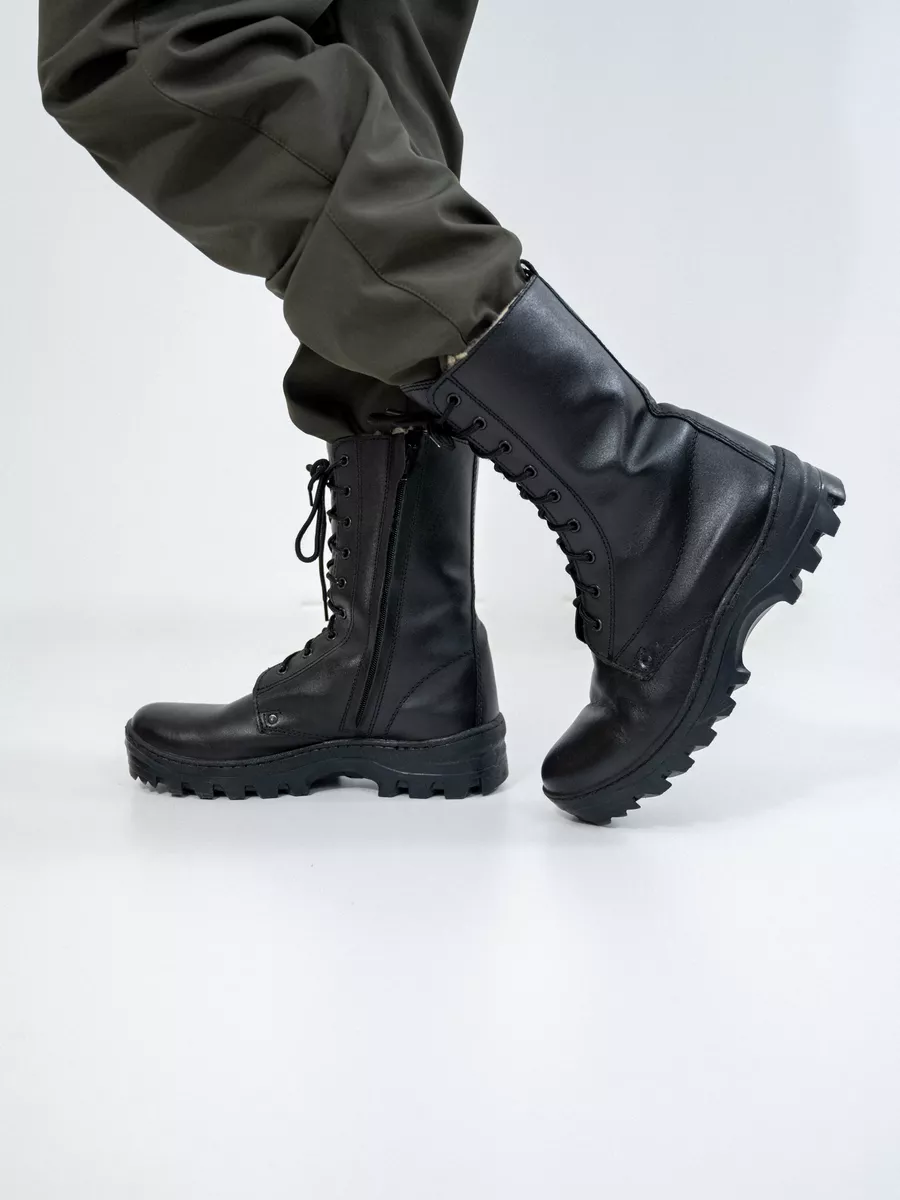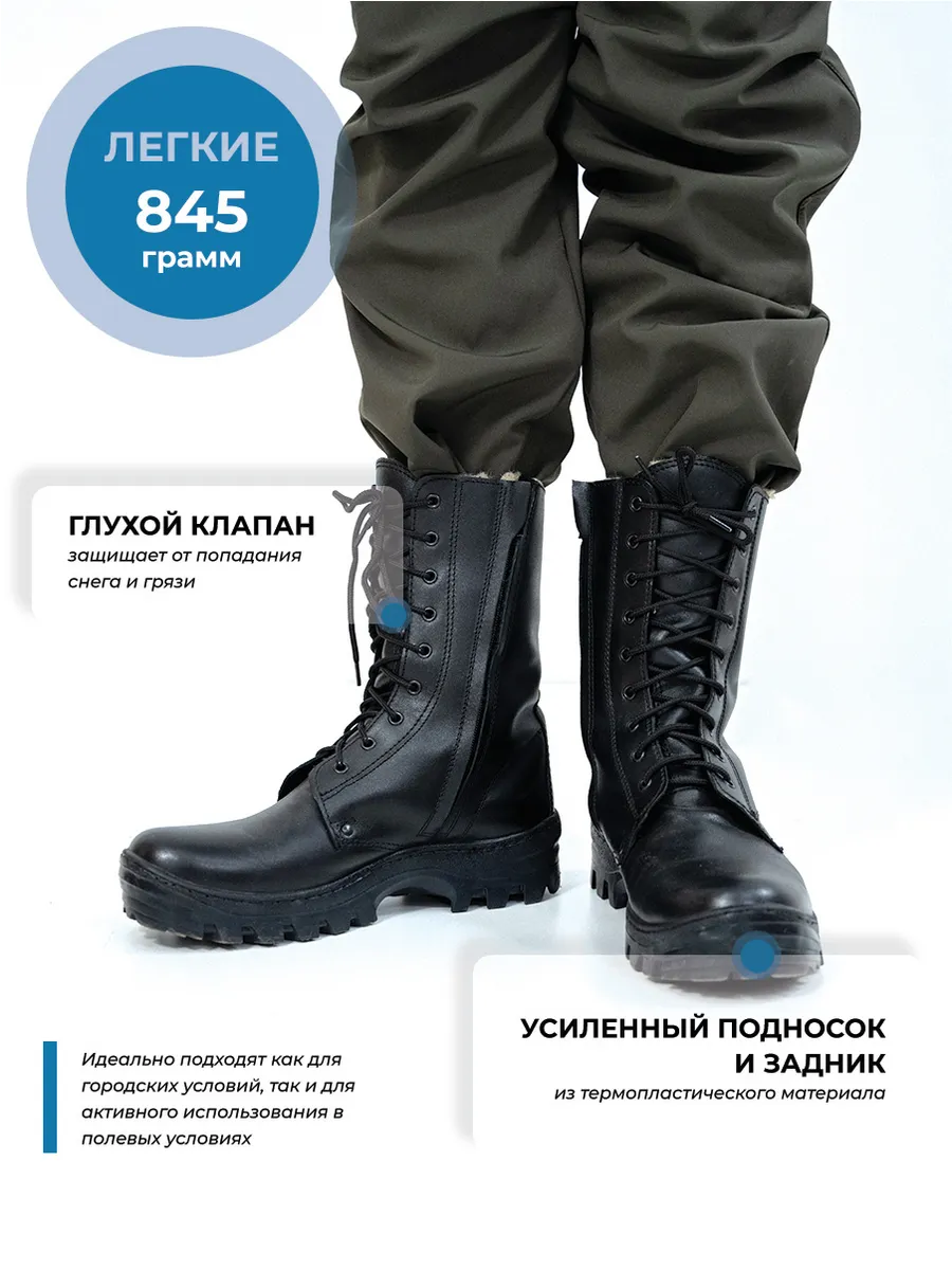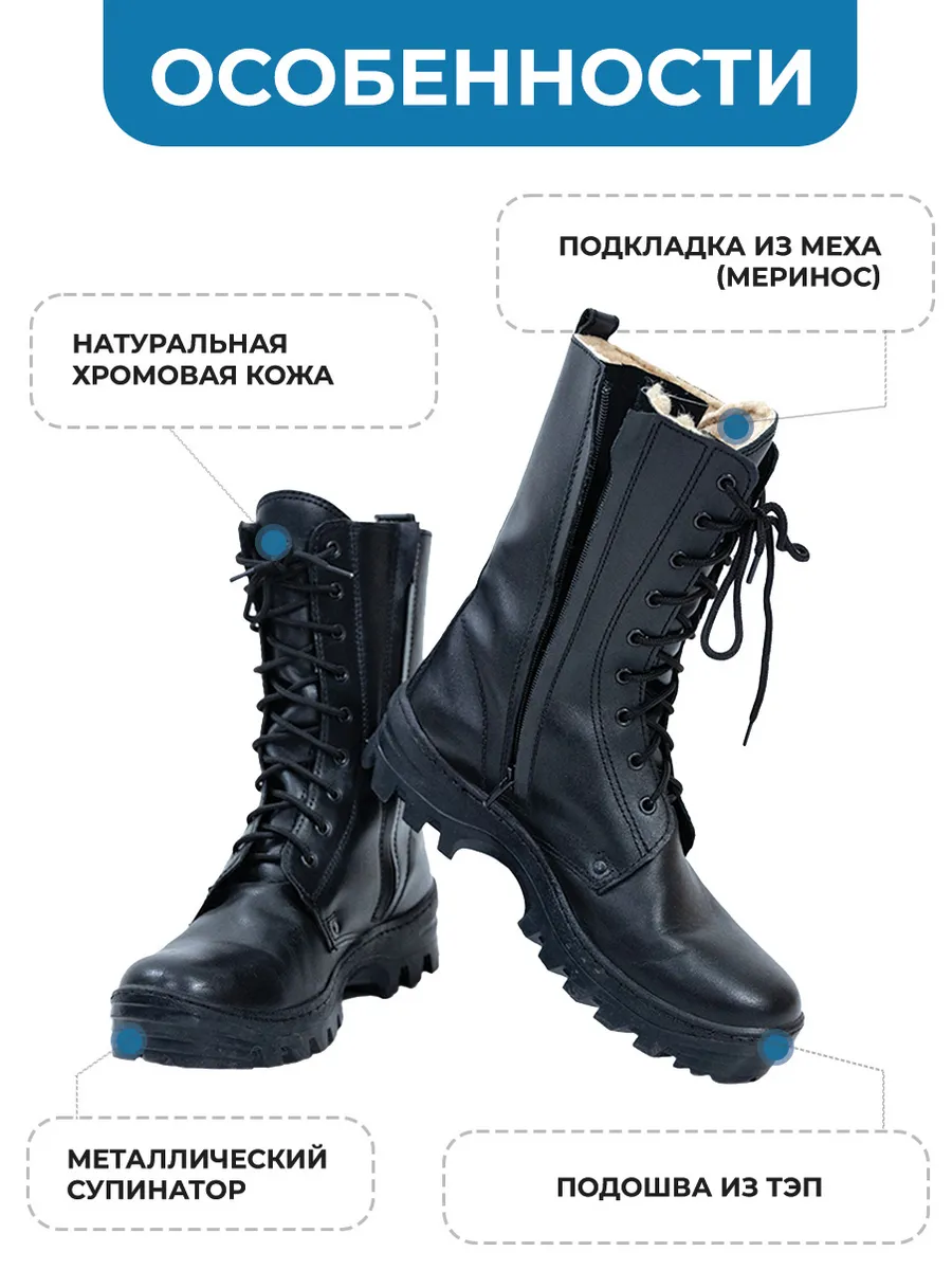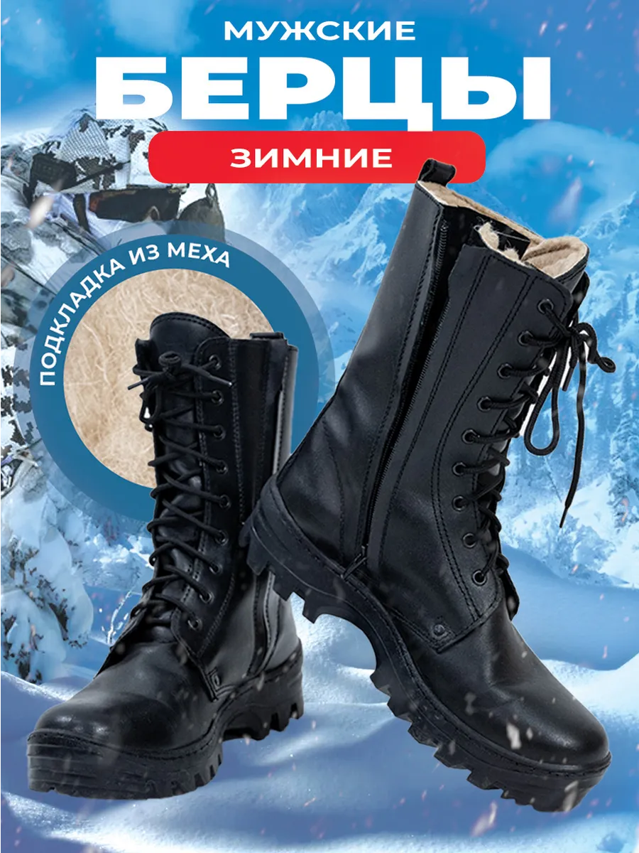 Берцы НАВИГАТОР, Бутекс черный, натуральный мех зима - интернет магазин Полигон