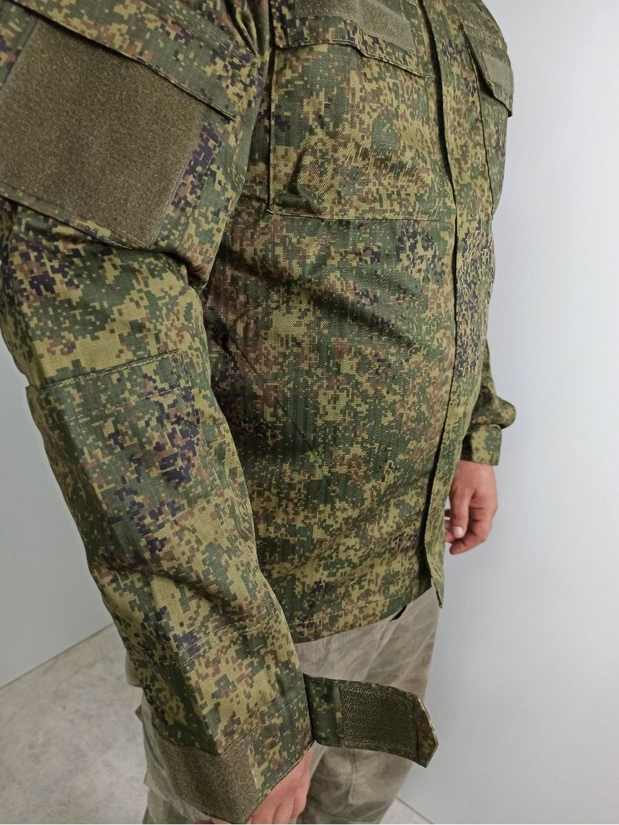 Китель ВКБО (ВКПО) уставной летний полевой ткань Твилл. Куртка с прямым воротником и липучками для крепления шевронов. Застёжка на молнии, закрывается не продуваемой планкой на липучках. На груди и рукавах предусмотрены по два кармана, сверху закрытых клапанами. Рукава кителя усилены в локтевой области. Манжеты можно отрегулировать с помощью застежки-липучки.
