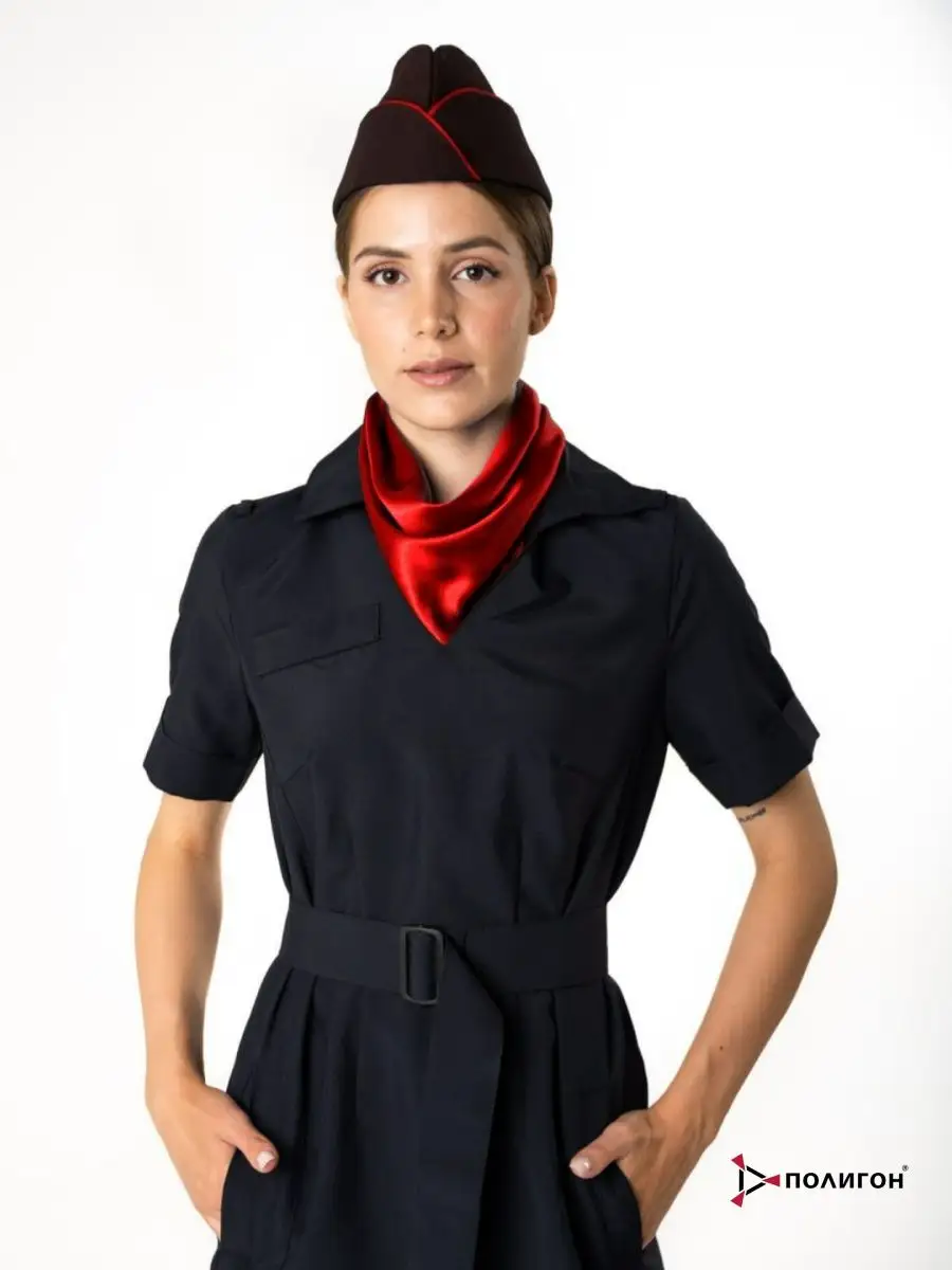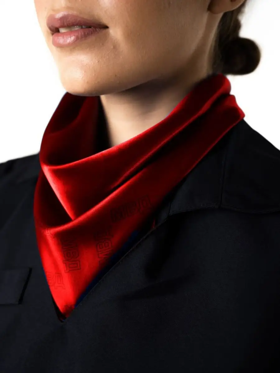 Женский атласный платок Полиция на шею в виде треугольной косынки для сотрудников МВД. Материал: креп-сатин. Внешняя сторона - гладкая атласная, изнанка - матовая. Края косынки обработаны оверлоком. По всей косынке, кроме центральной части, нанесена надпись "МВД". Предназначена для ношения с платьем Полиции.