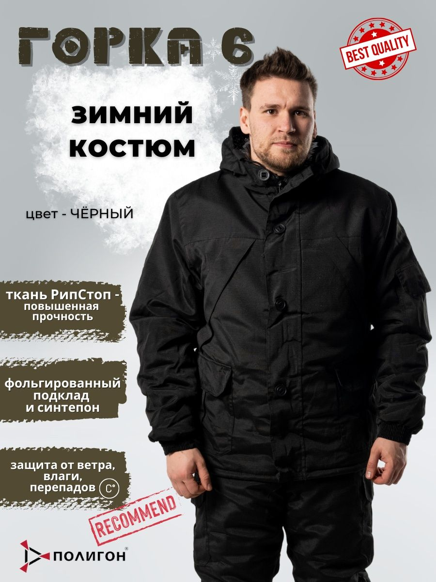 Костюм зимний Горка 6, цвет Черный, ткань рип-стоп - интернет магазин Полигон