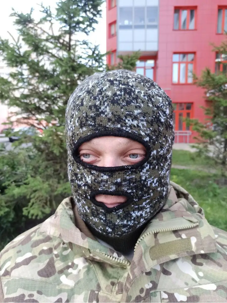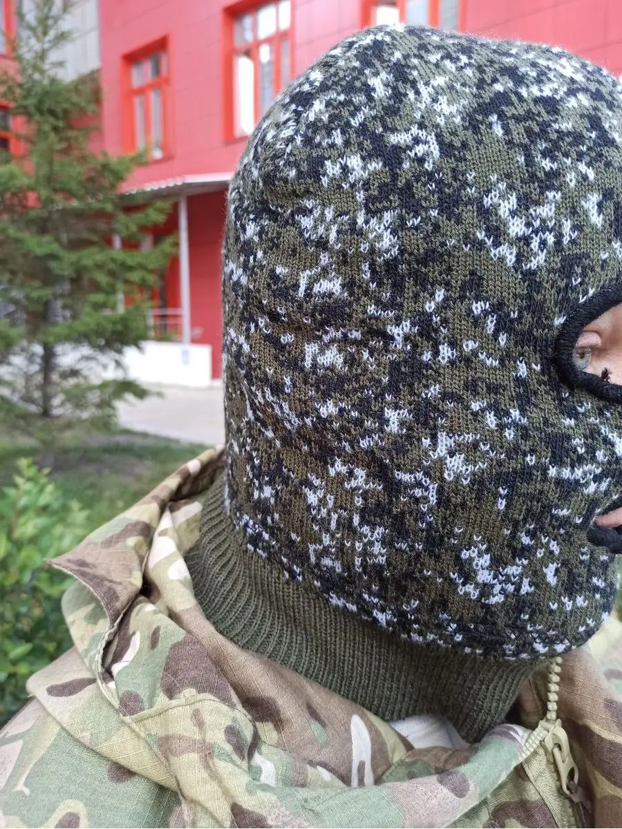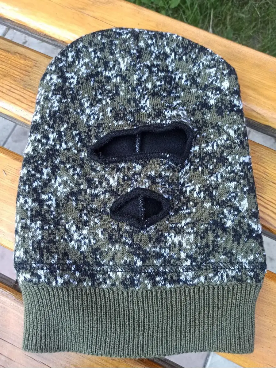 Тактическая маска балаклава для лица, полушерсть, 2 ОТВЕРСТИЯ на ФЛИСЕ, камуфляж зеленая цифра - интернет магазин Полигон