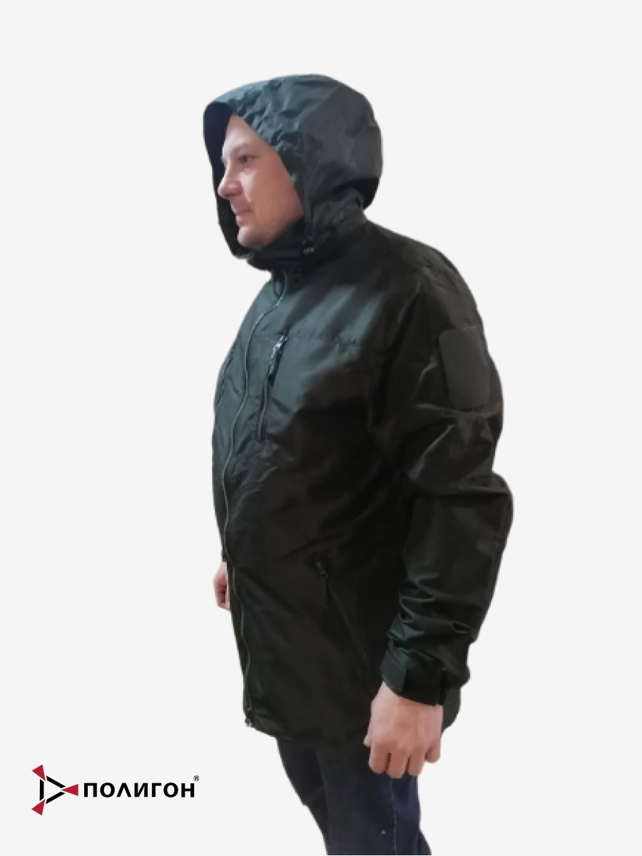 Куртка-ветровка прямого силуэта на разъемной молнии, переходящей в воротник-стойку. По низу куртку-ветровку можно отрегулировать по объему. Манжеты рукавов застегиваются на текстильную застежку (липучку). Куртка и капюшон на подкладе из сетчатого трикотажного полотна. Капюшон регулируется и отстегивается.