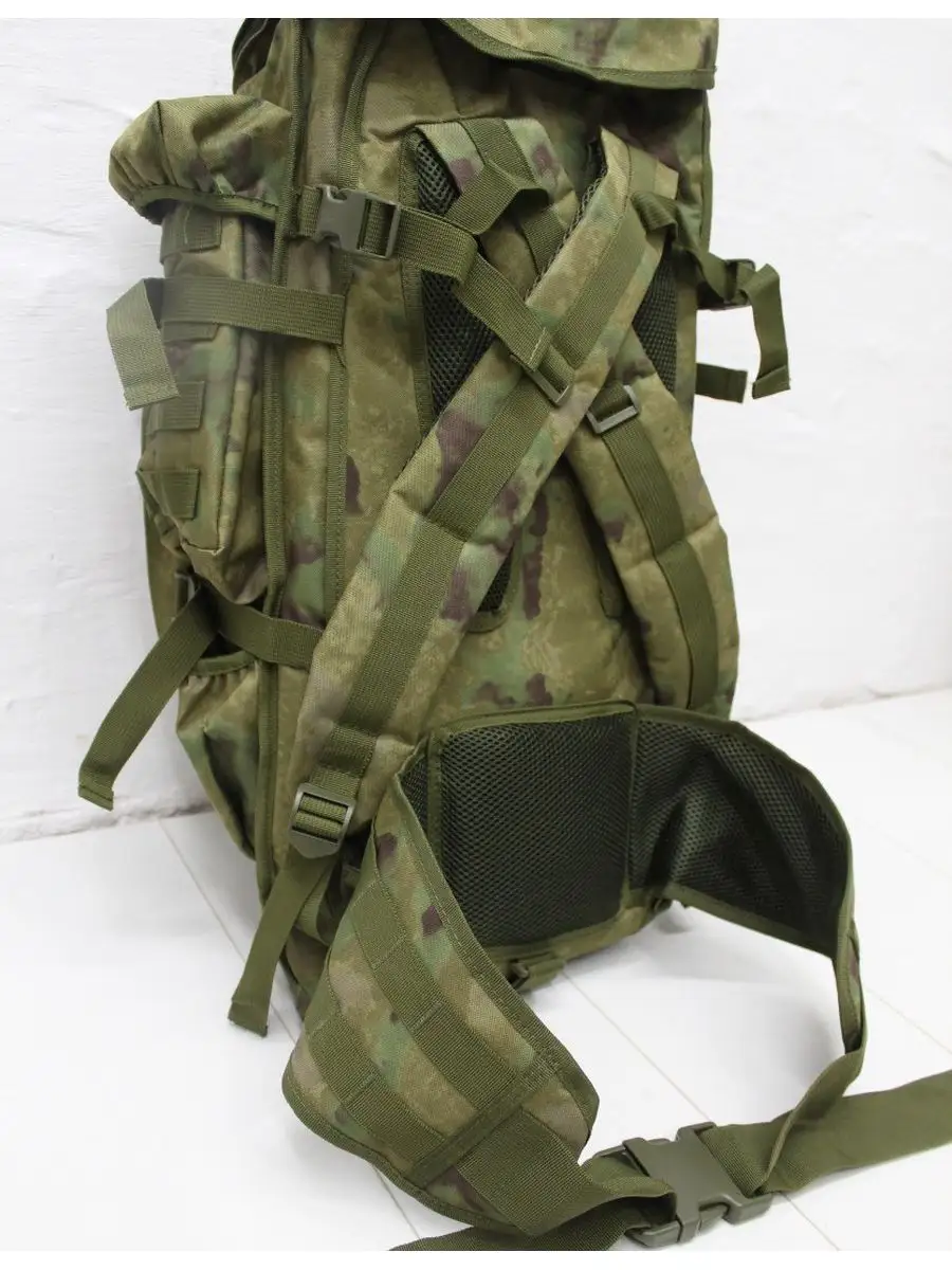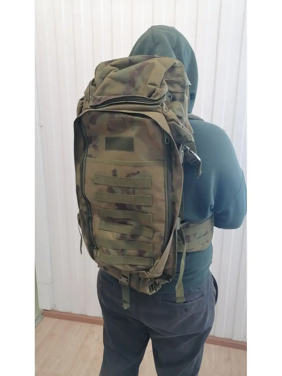 Рюкзак охотник с чехлом для ружья 75 л. Компактный, удобный и качественно сшитый рюкзак подходит охотникам, спортсменам и страйкболистам. Общий объем 75 л. Объем основного отделения 50л. Длина чехла для оружия 92 см. На фронтальной стороне 6 рядов строп моли по 4 ячейки в каждом ряду, для дополнительных подсумков. Две панели велкро для знаков отличия. Снизу застежка фастекс для фиксации оружейного чехла. По бокам рюкзака регулируемые боковые стяжки, 4 ряда строп моли по 3 ячейки в каждом ряду. Так же по боковые объемные карманы с клапаном на липучке сверху, и карман на резинке снизу. На спине рюкзака охотник стропы с пряжками в области плеч для крепления малого снаряжения и 2 крепежа для снаряжений с карабинами. Широкие плечевые несъемные лямки анатомического силуэта распределяют вес рюкзака. Спина, лямки и пояс оснащены эргономичными вставками. Пояс фиксируется на застежку фастекс, имеет 2 ряда строп моли. Внутреннее отделение с фронтальной стороны фиксируется по всему периметру молнией. Внутри отделения 6 рядов строп моли по 4 ячейки в каждом ряду. Карман в верхнем клапане также фиксируется молнией, внутри расположена пластиковая ручка. Ручку можно убрать (спрятать). Сам чехол для оружия закрывается на клапан липучку. Также внутри предусмотрено отдельное отделение под пистолет. Рюкзак представлен в цвете Олива и Мох. Комбинированный рюкзак с чехлом для оружия – это универсальное решение для всех, чей активный отдых связан с оружием.