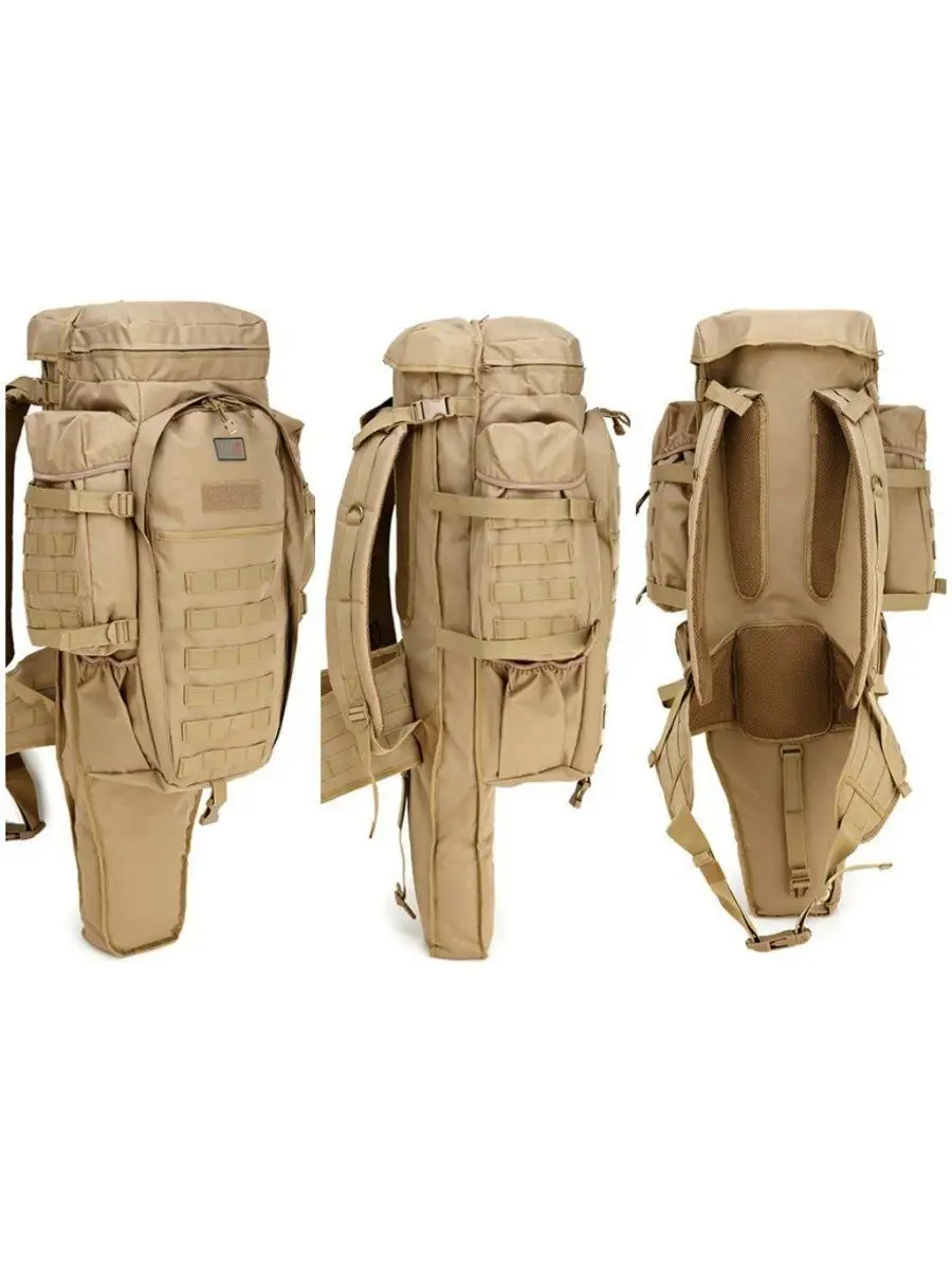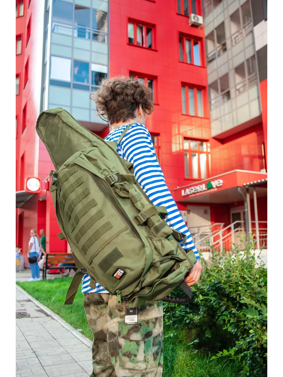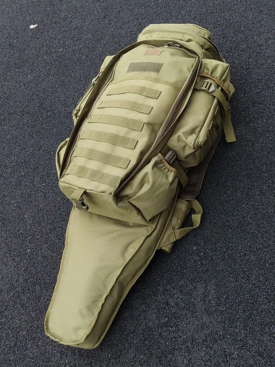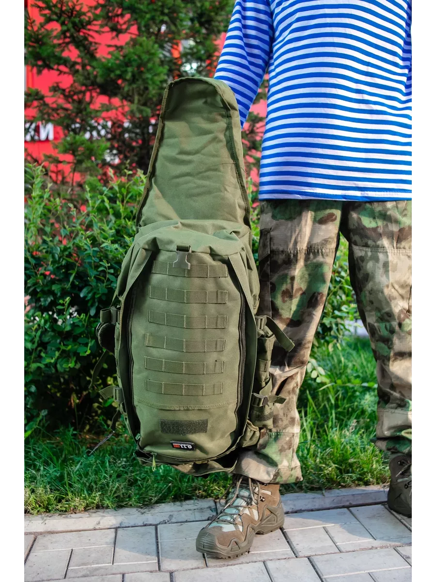 Рюкзак охотник с чехлом для ружья 75 л. Компактный, удобный и качественно сшитый рюкзак подходит охотникам, спортсменам и страйкболистам. Общий объем 75 л. Объем основного отделения 50л. Длина чехла для оружия 92 см. На фронтальной стороне 6 рядов строп моли по 4 ячейки в каждом ряду, для дополнительных подсумков. Две панели велкро для знаков отличия. Снизу застежка фастекс для фиксации оружейного чехла. По бокам рюкзака регулируемые боковые стяжки, 4 ряда строп моли по 3 ячейки в каждом ряду. Так же по боковые объемные карманы с клапаном на липучке сверху, и карман на резинке снизу. На спине рюкзака охотник стропы с пряжками в области плеч для крепления малого снаряжения и 2 крепежа для снаряжений с карабинами.  Широкие плечевые несъемные лямки анатомического силуэта распределяют вес рюкзака. Спина, лямки и пояс оснащены эргономичными вставками. Пояс фиксируется на застежку фастекс, имеет 2 ряда строп моли. Внутреннее отделение с фронтальной стороны фиксируется по всему периметру молнией. Внутри отделения  6 рядов строп моли по 4 ячейки в каждом ряду. Карман в верхнем клапане также фиксируется молнией, внутри расположена пластиковая ручка. Ручку можно убрать (спрятать). Сам чехол для оружия закрывается на клапан липучку. Также внутри предусмотрено отдельное отделение под пистолет. Рюкзак представлен в цвете Олива и Мох. Комбинированный рюкзак с чехлом для оружия – это универсальное решение для всех, чей активный отдых связан с оружием.